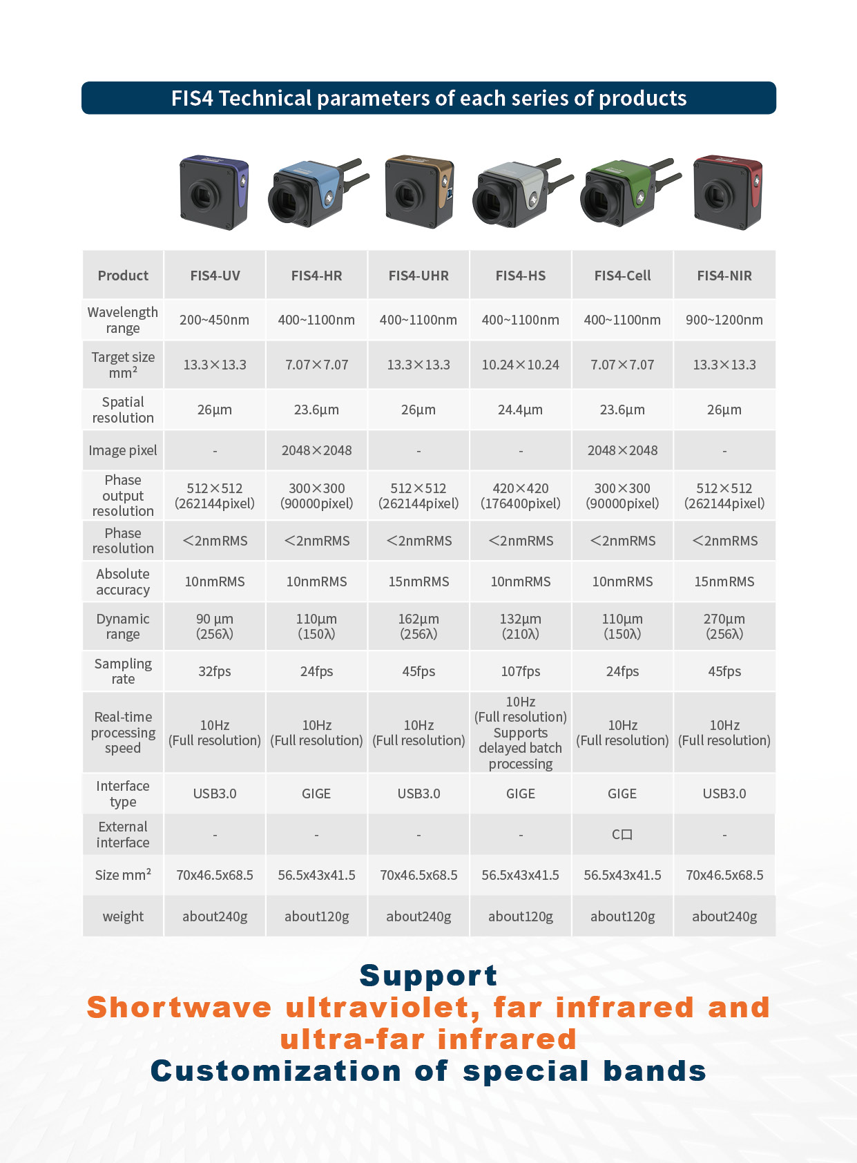 Il sensore interferometro a quattro onde nel vicino infrarosso FIS4-NIR combina la tecnologia brevettata di diffrazione a quattro onde con codifica casuale con una fotocamera a infrarossi e interferisce nella posizione del piano dell'immagine posteriore. Ha bassi requisiti di coerenza della sorgente luminosa e non richiede sfasamento. I normali sistemi di imaging possono ottenere misurazioni interferometriche. Ha una resistenza alle vibrazioni ultraelevata e una stabilità ultraelevata e può ottenere misurazioni di precisione a livello di nm senza isolamento delle vibrazioni.